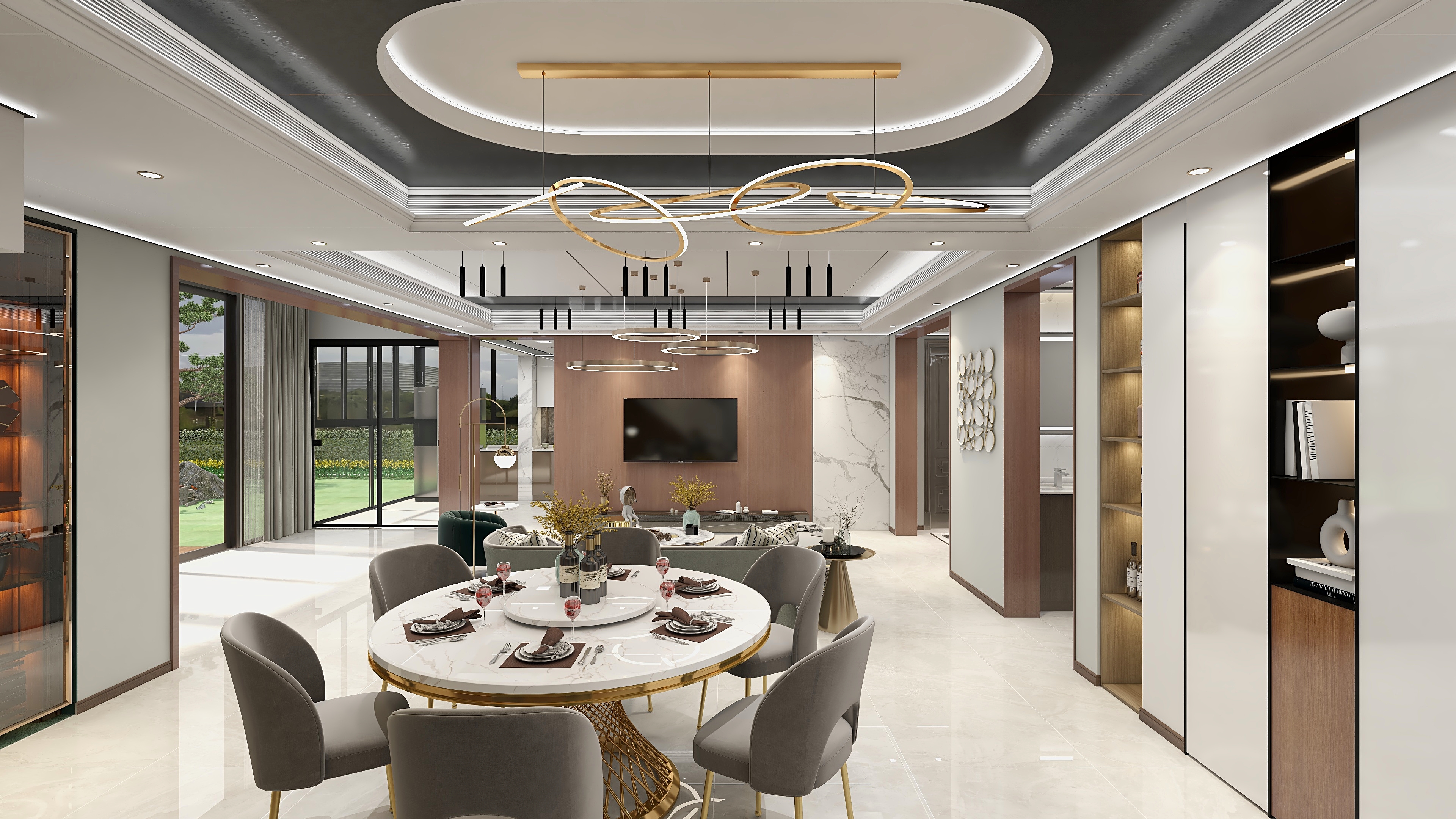 美味面前,煩惱不值一提。來一頓元氣滿滿的早餐再出發(fā)吧!橢圓形吊頂,氣質(zhì)優(yōu)雅,制造出視覺上的延展效果。