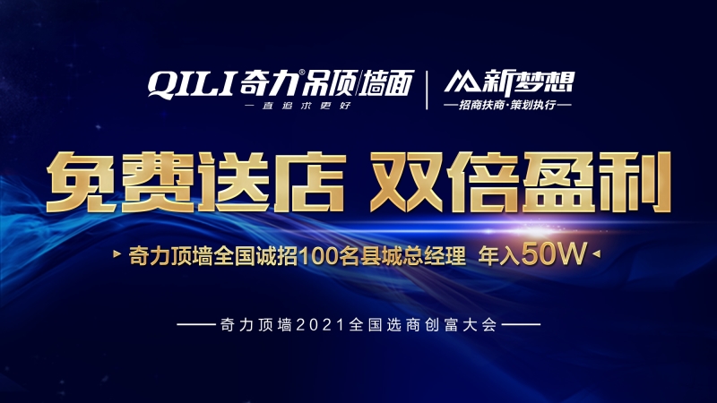 8月12日,奇力頂墻強勢開啟“免費送店 雙倍盈利”全國選商創(chuàng)富大會。本次線上創(chuàng)富大會,邀請到奇力頂墻副總經(jīng)理洪總、銷售總監(jiān)陳總、奇點商學(xué)院李老師,向客戶全方位展示奇力頂墻品牌、營銷...